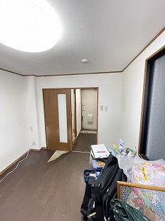 1DKの洋室に入ると、床に敷いていたクッションフロアCFが