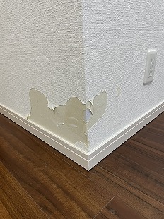 ペット犬の巾木かじり傷・壁紙クロス破れ補修 大阪市北区