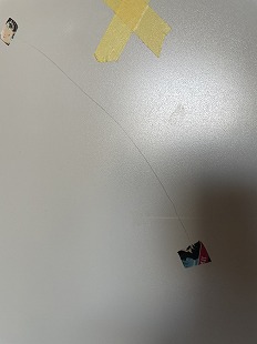 お子さんの仕業でしょうか?針金のような鋭利なもので引っかいた線キズが、